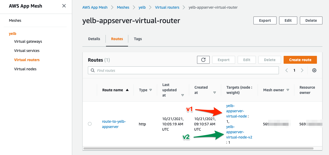 - Now we can create a new version of the yelb-appserver and use AWS App Mesh to send the traffic to the new app version ( v2 ).