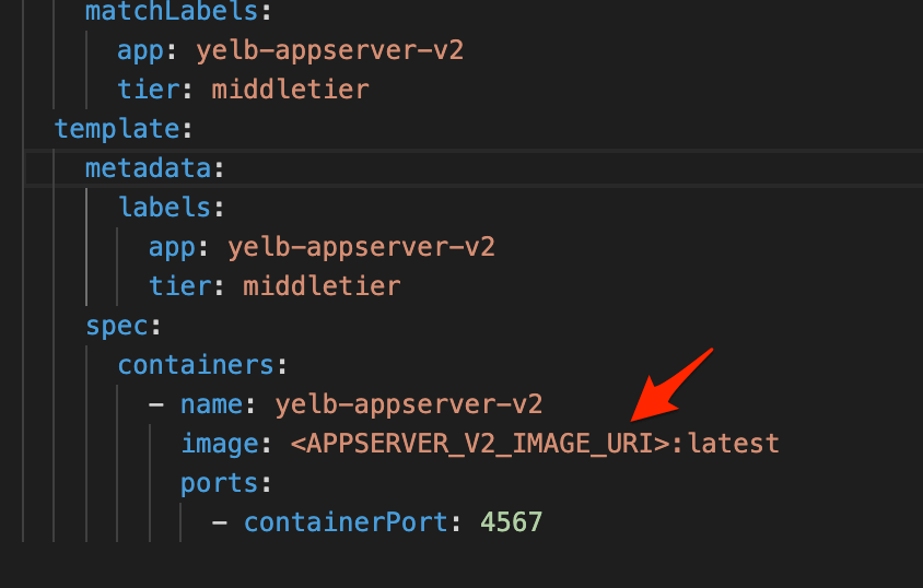 - To deploy the newly created app ( v2 ) using AWS ECR container image , edit <APPSERVER_V2_IMAGE_URI> to the URI of new AWS ECR container image.