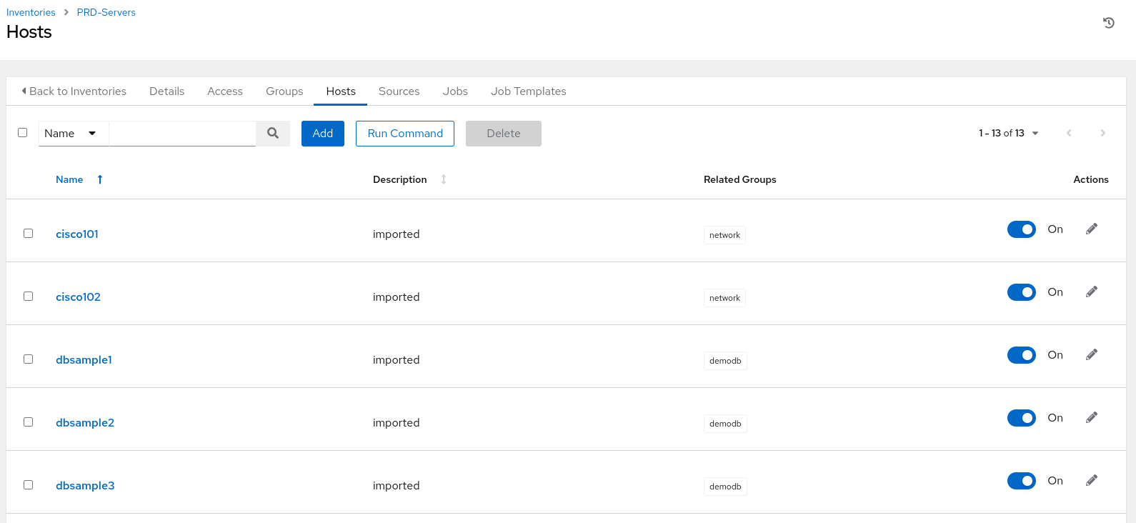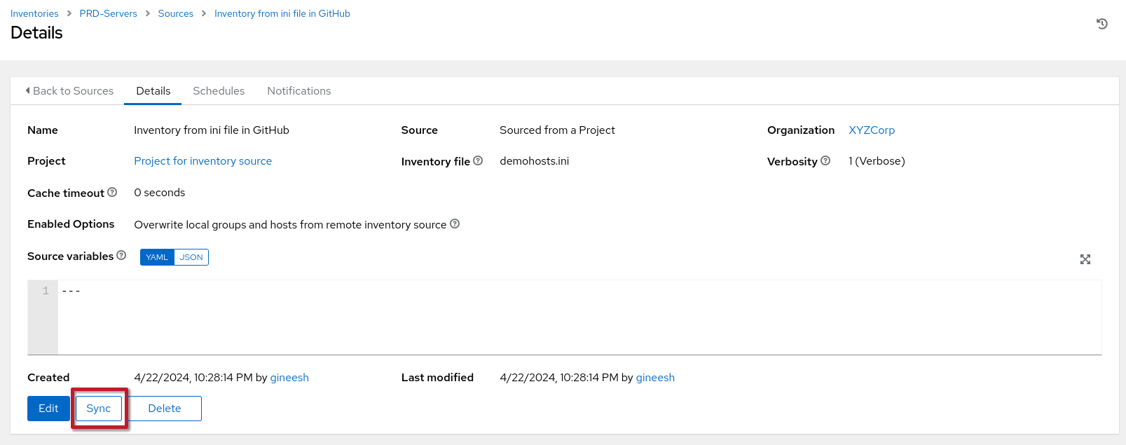 demohosts.ini) in the source (Git) and perform the following actions: Sync the source project in Ansible Controller. Sync the inventory source.