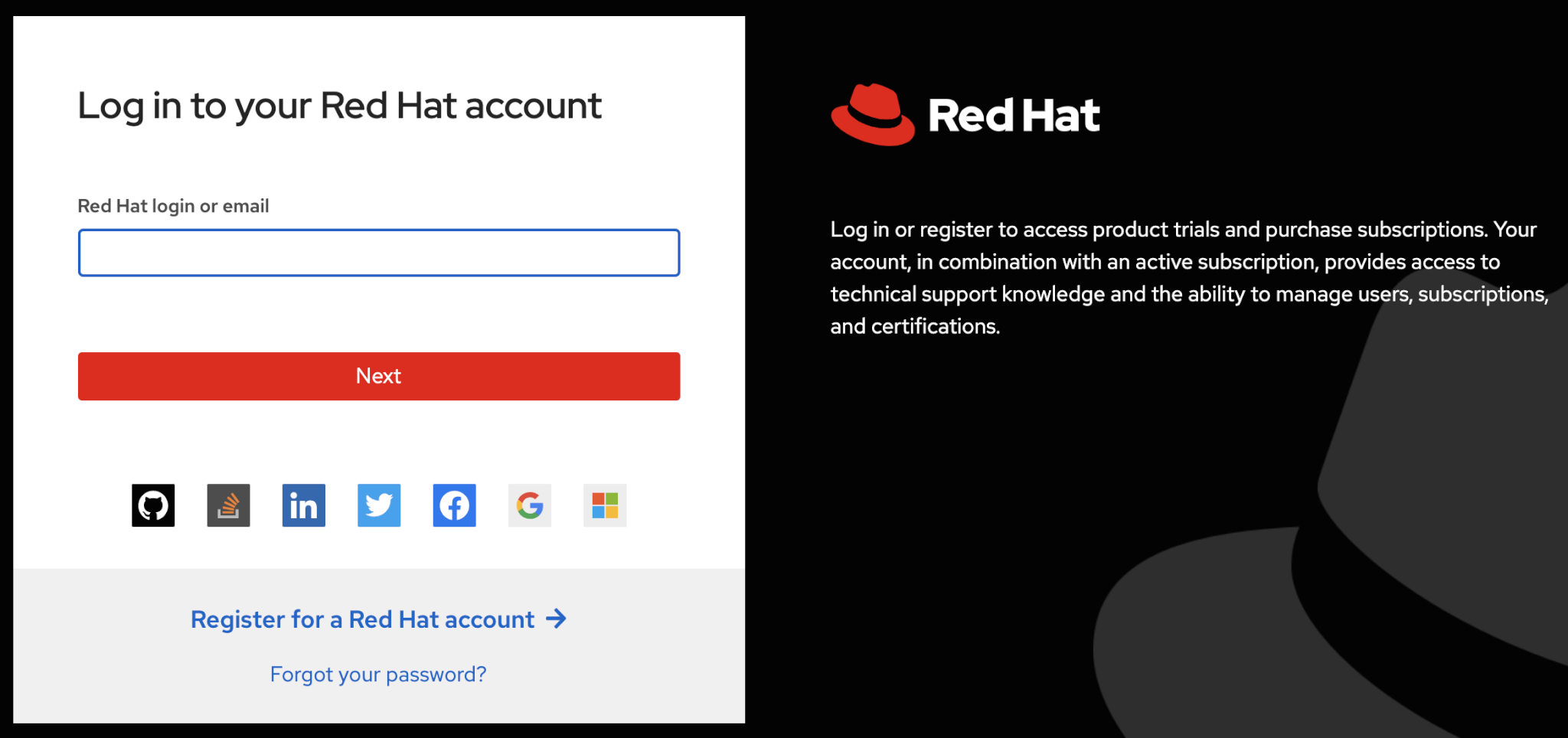 Once activated, login with your Red Hat account