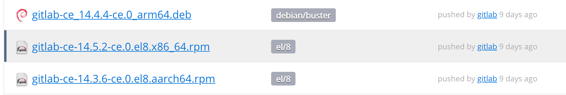 Find the rpm link (or whichever package you are installing) and click on the link. In my case I am downloading gitlab-ce-14.5.2-ce.0.el8.x86_64.rpm (el8) for RHEL8.