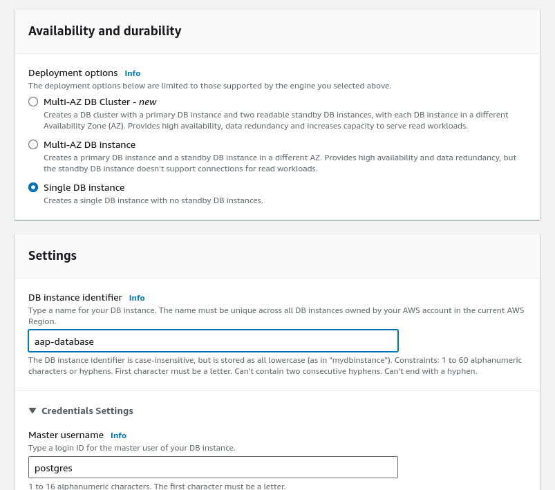 Depending on your needs, you can opt for a Single DB instance or a Multi-AZ DB Cluster for production workloads.