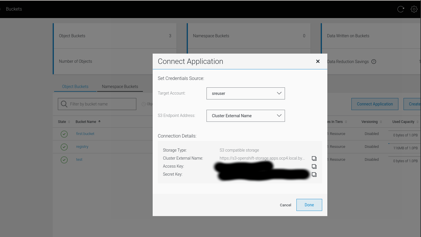 - S3 Region Endpoint: https://s3-openshift-storage.apps.ocp4.local.bytewise.my/