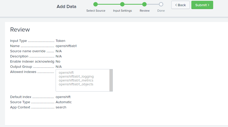 securitycontextconstraints.security.openshift.io/privileged added to: ["system:serviceaccount:splunk-k8s:splunk-hec-splunk-kubernetes-logging" "system:serviceaccount:splunk-k8s:splunk-hec-splunk-kubernetes-objects"]