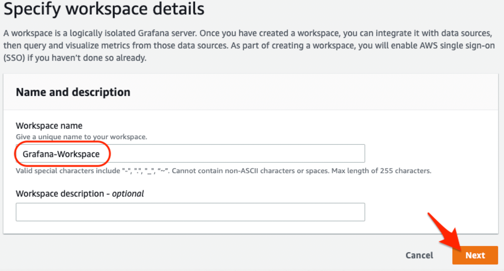 Step1: Create Amazon Managed Service for Grafana (AMG) workspace