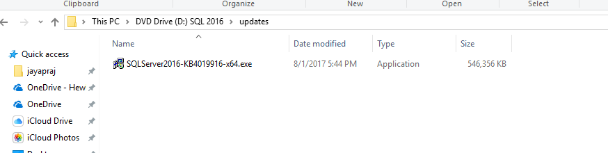 Create an ISO from that folder with the help of software like ImgBurn Here is how your folder should look like. This is an example with SQL Server 2016 with SP1 and Cumulative Update 3: